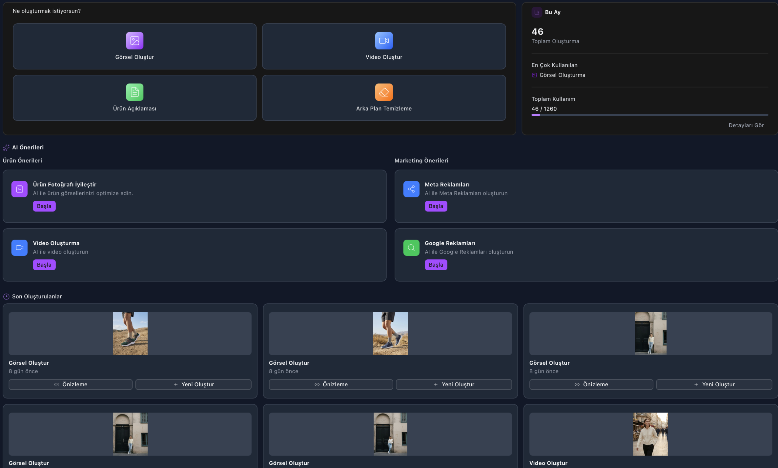 Ürün görsellerini merkeze alarak satışa hazır içerikler üretin ve içerik sürecini tek yerden yönetin.