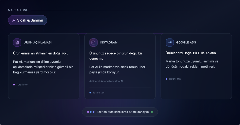 Her içerikte aynı ton, aynı kalite ve aynı marka diliyle üretim yapın. Ürün sayfalarında tutarlı bir görünüm sağlayın.